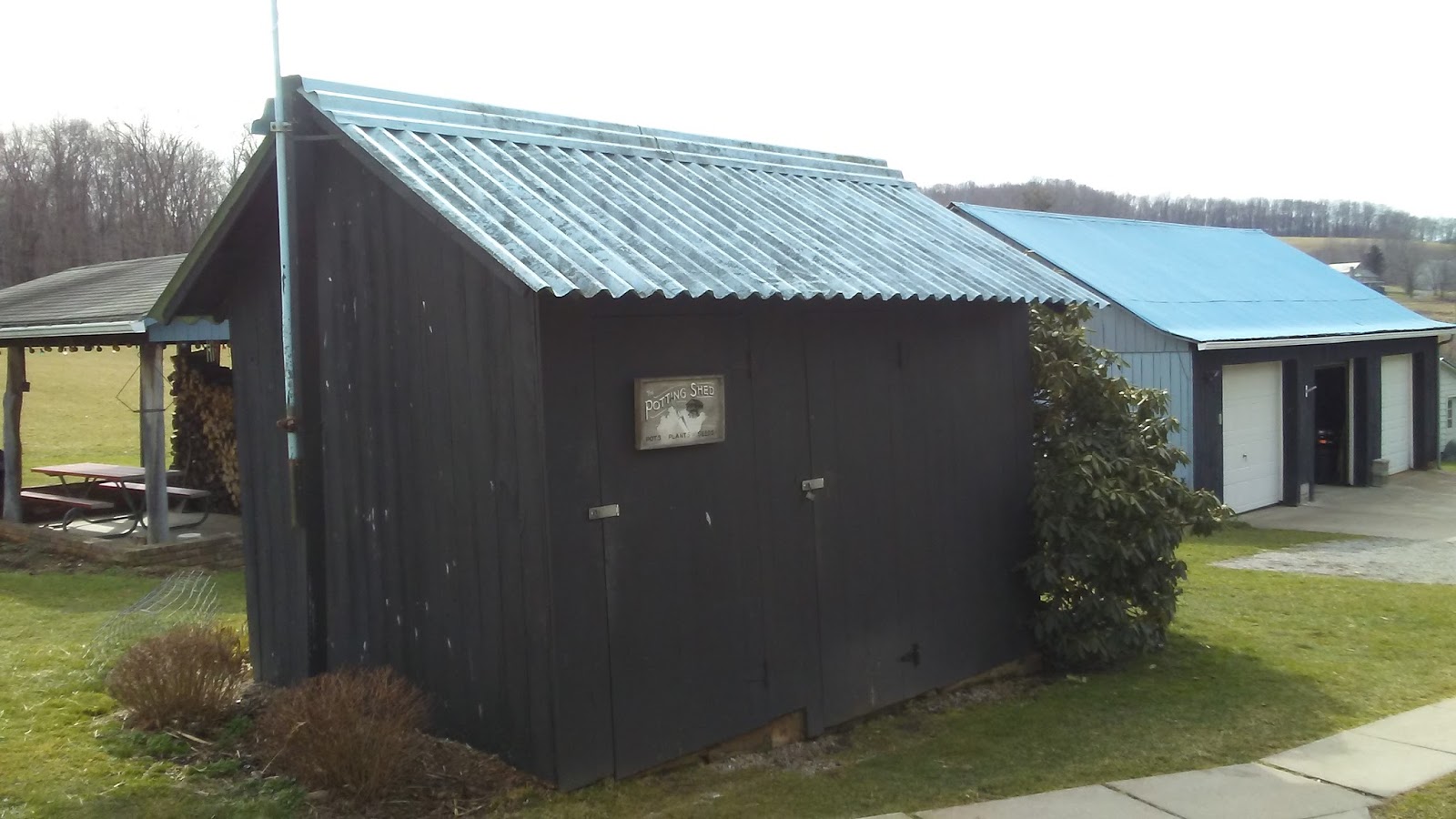 The potting shed and back-up generator shed are two rooms in one shed.